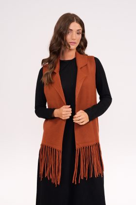 וסט סריג מעוצב עם שוליים פרומים בסיומת גדילים, שמוסיף טאץ’ צעיר ומלא שיק 🤎