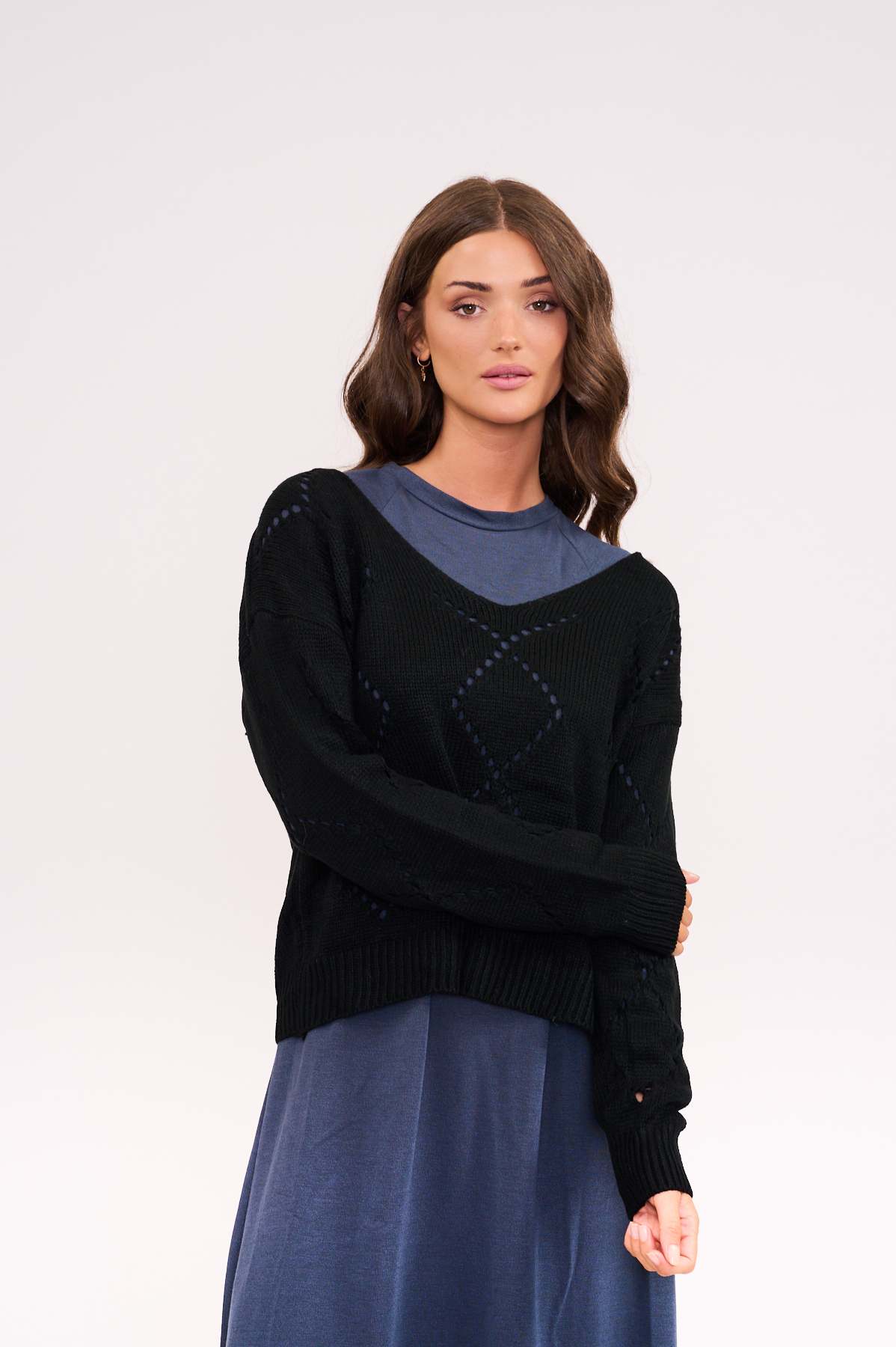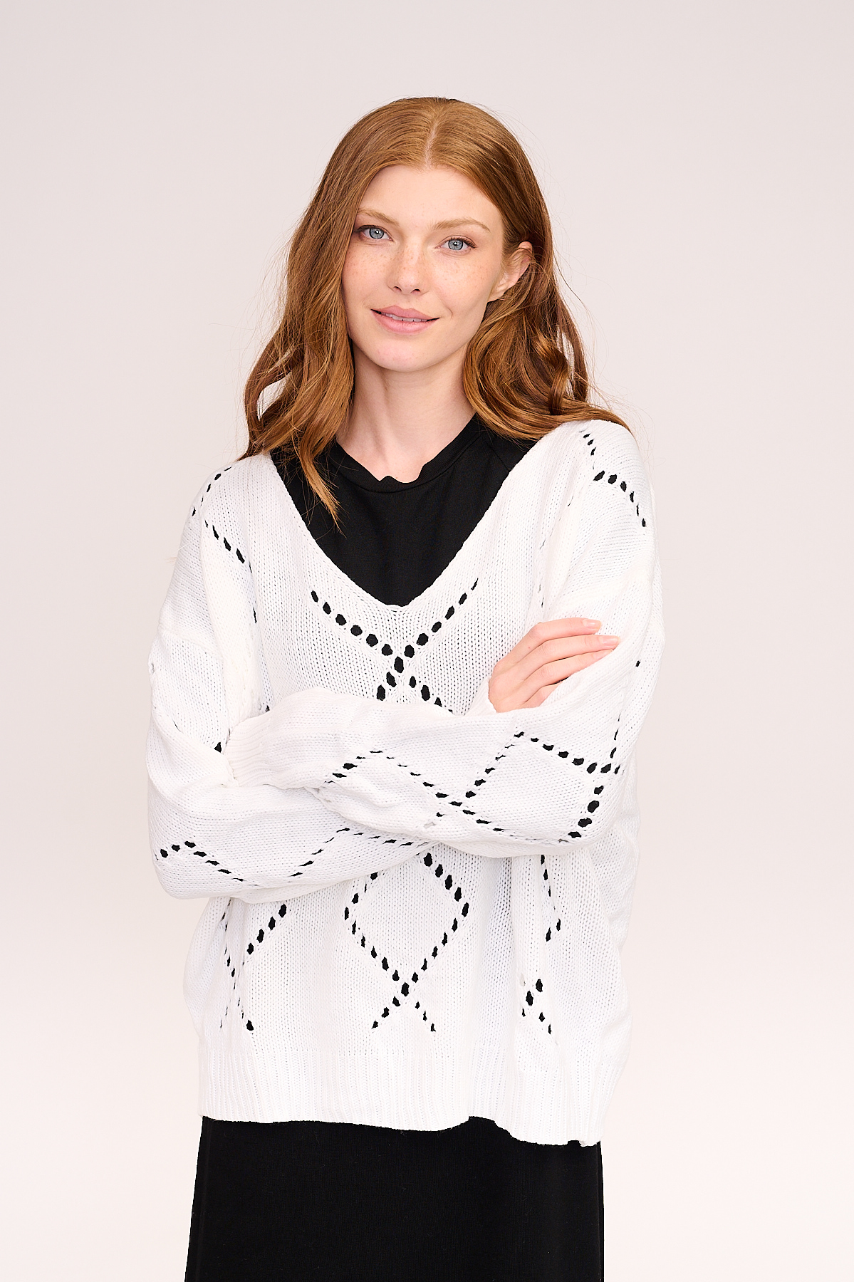 סריג מהמם במראה קלאסי עם דוגמת יהלומים עדינה 🌿