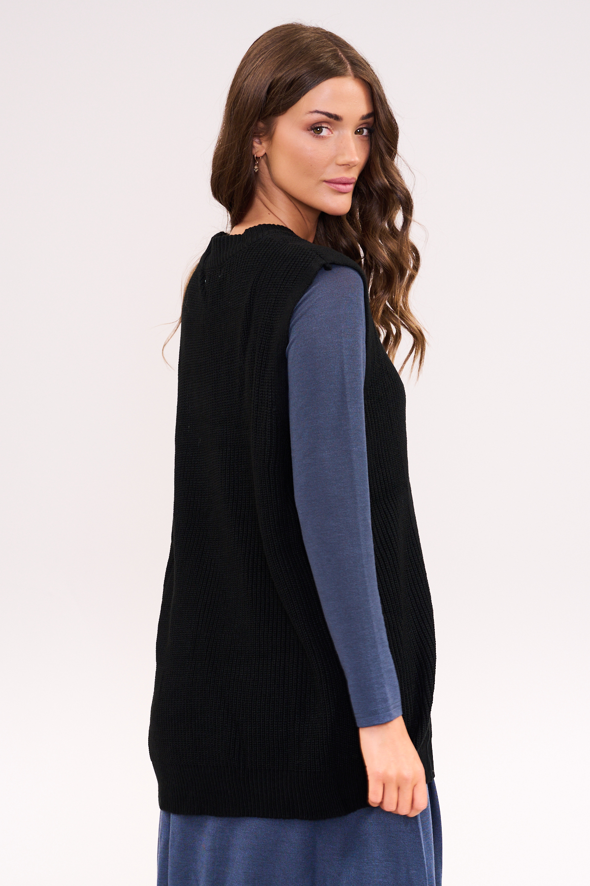 בעל גזרה ארוכה ומשוחררת שמחמיאה לגוף וקל לשילוב מעל חולצה או שמלה.