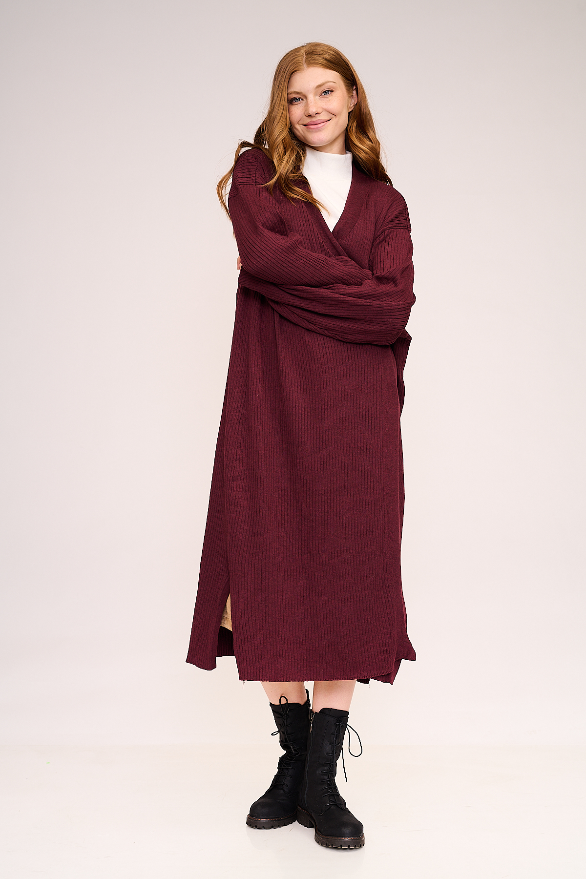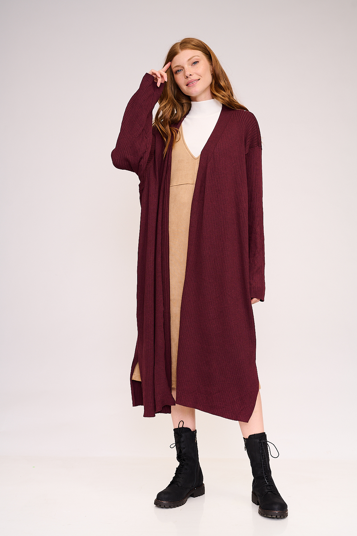 קרדיגן ארוך בגזרה ישרה ונינוחה, עשוי סריג דק ונעים למגע.