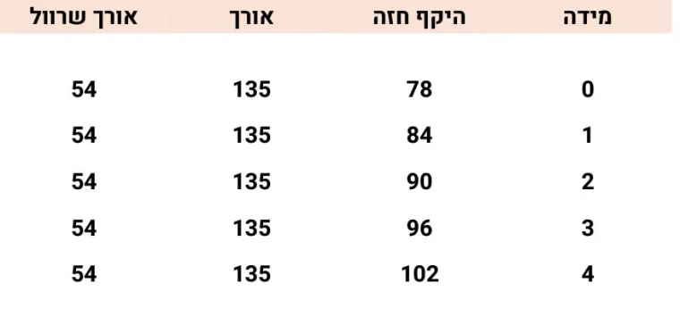 - מידה: 1, 2, 3, 4, מידה 0