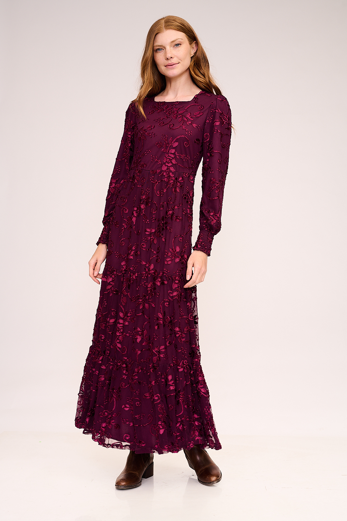 שמלת דומיה היא שמלה אלגנטית ומלאת סטייל, עם רקמת פרחים תלת־ממדית עשירה שמעניקה לה מראה ייחודי ועוצמתי.
