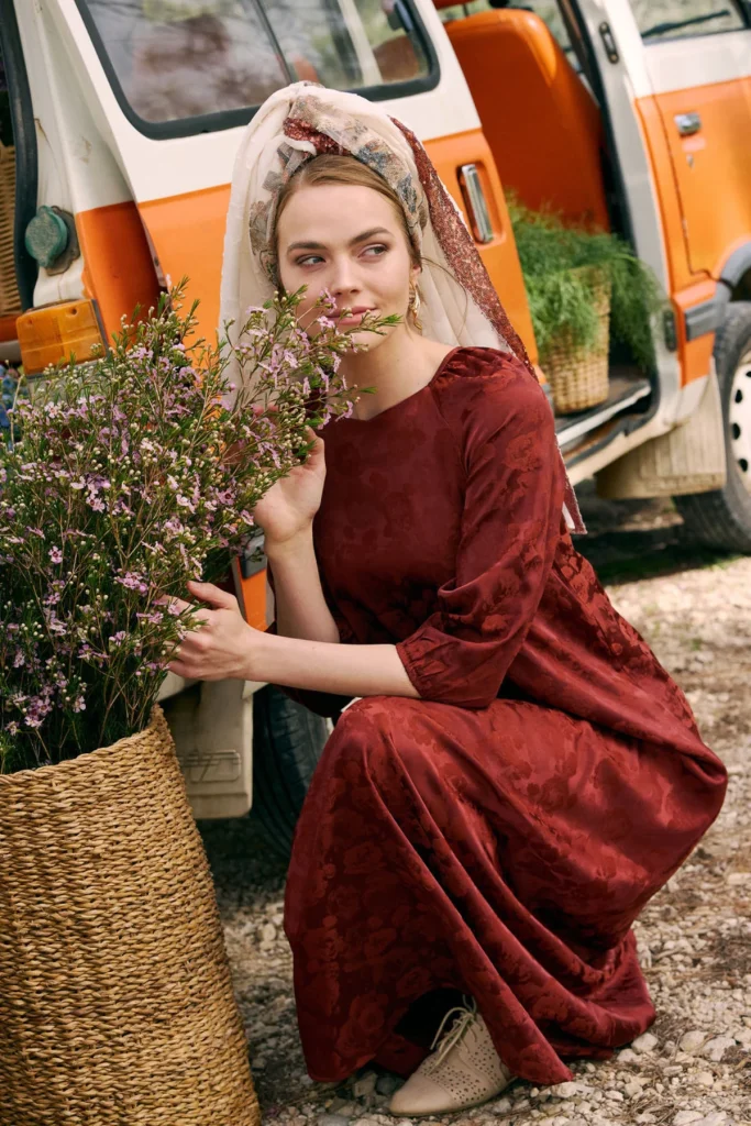 שמלת מקסי מלאה בנוכחות, עשויה מבד סאטן עדין ואיכותי