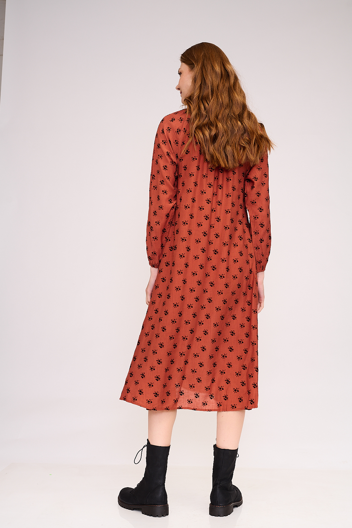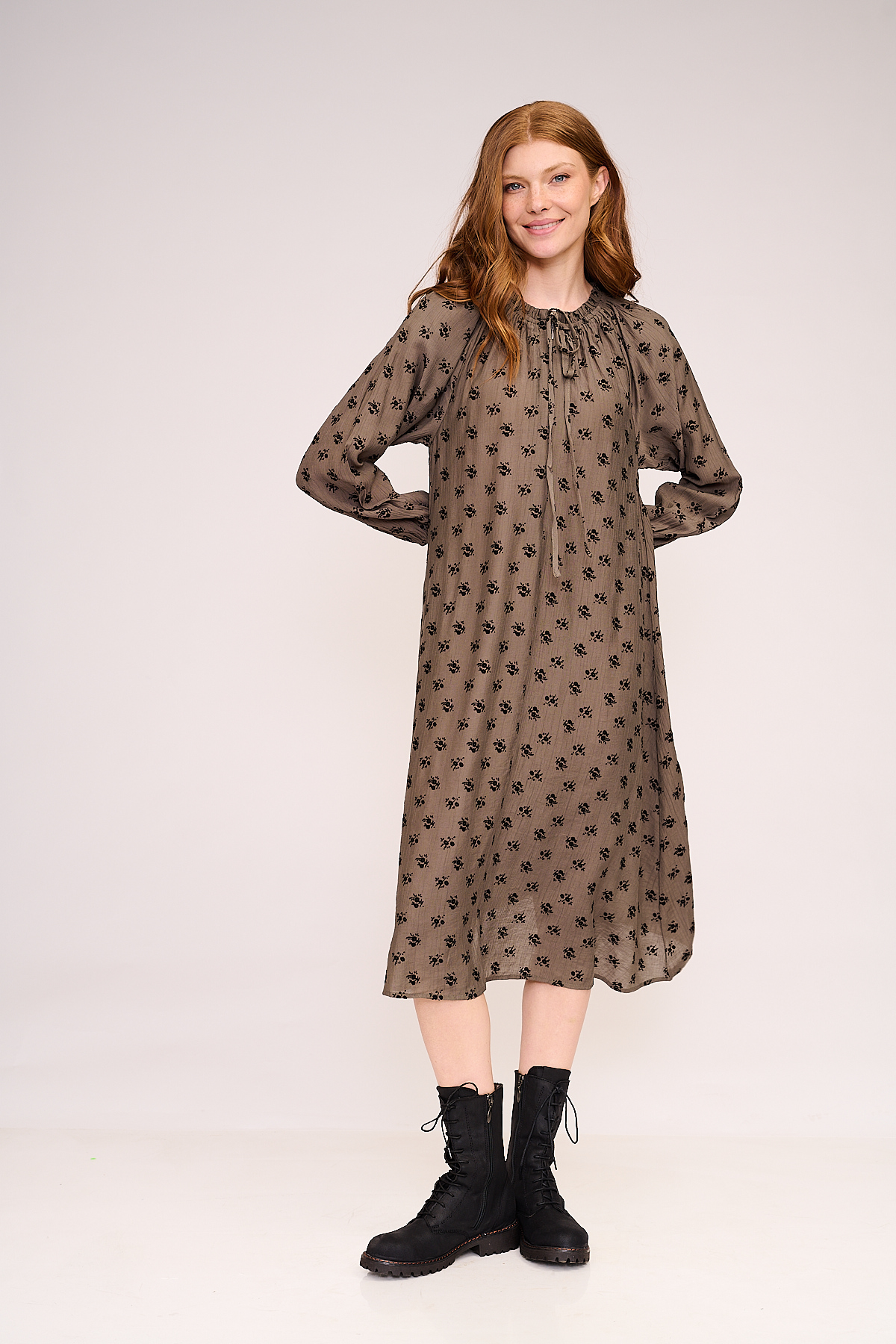 שמלת מדבר היא שמלה קלילה ונוחה בגזרה משוחררת, עם הדפס פרחים עדין בקטיפה צרובה שמעניק לה טאצ’ רומנטי וייחודי.