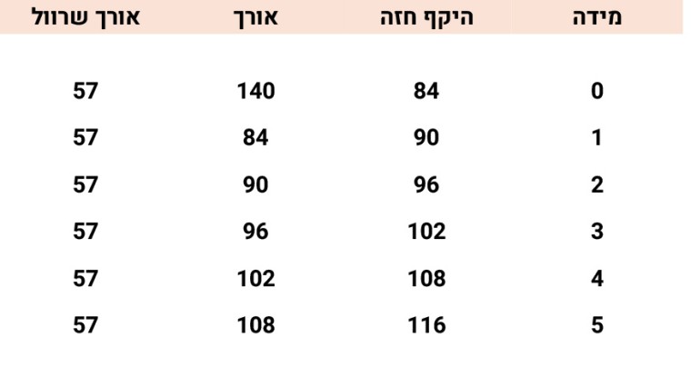 - מידה: 1, 2, 3, 4, 5, מידה 0