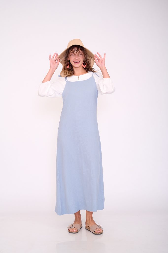 הגזרה המשוחררת עם חיתוך בגובה המותן ואורך מידי (110 ס”מ עם אפשרות של 10 ס”מ נוספים להארכה) יוצרת תנועה קלילה ומחמיאה, והשרוולים הארוכים עם כיווץ עדין בקצה מוסיפים מגע רומנטי.