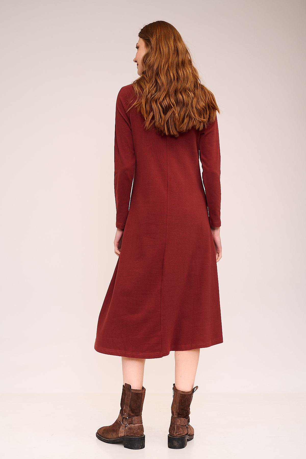 שמלה רכה ונעימה בגזרת A קלאסית, עשויה מבד איכותי בהרכב 65% כותנה ו־35% פוליאסטר – נושם, נעים למגע וקליל ללבישה יומיומית.