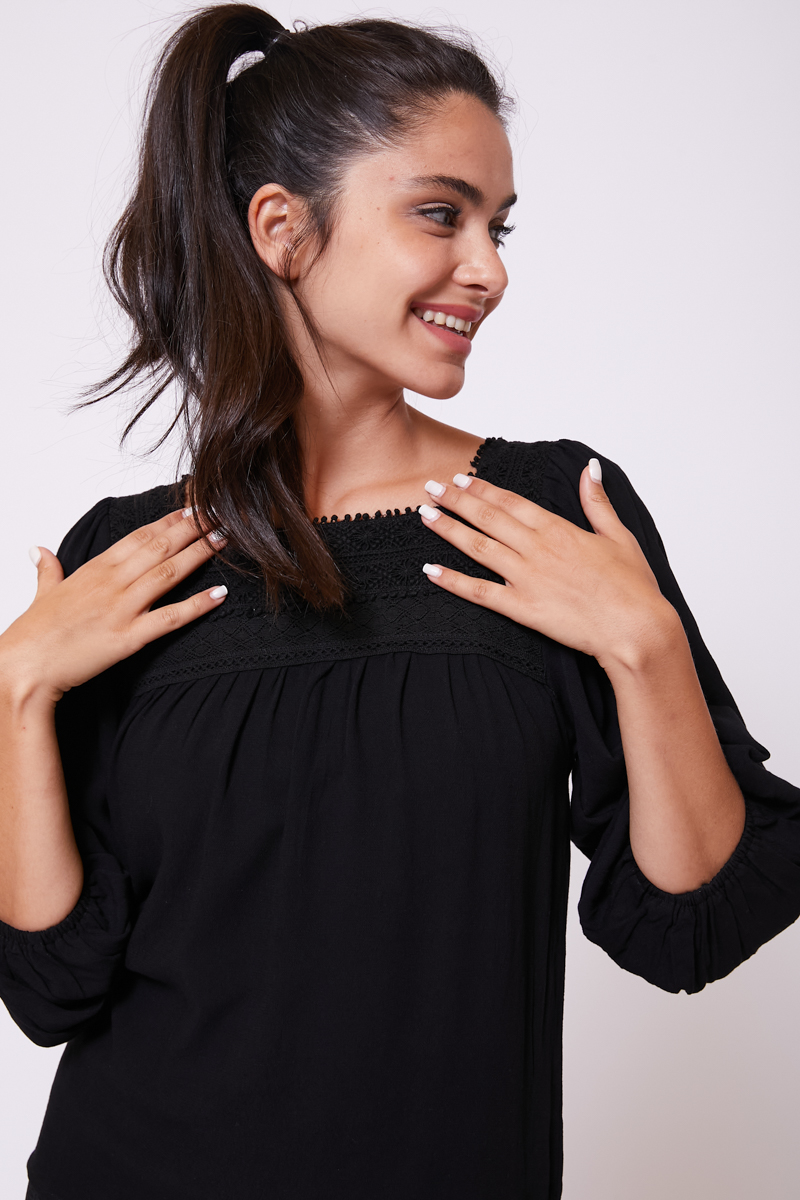 שרוולים תפוחים באורך ¾ מוסיפים טאץ’ מעודכן, וגזרת הסמוק העליונה מבטיחה נוחות ותנועה מושלמת.