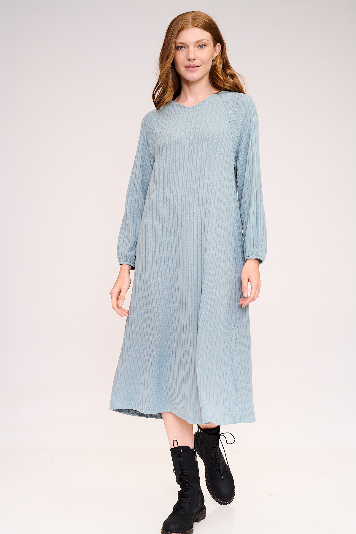 עשויה מ־50% ויסקוזה ו־50% פוליאסטר, השמלה משלבת רכות נעימה עם בד נושם וגמיש, שמרגיש טבעי על הגוף. הגזרה המשוחררת והקווים האנכיים שיוצרים תחושת אורך וקלילות, יחד עם שרוולים ארוכים בגימור עדין – מעניקים לשמלה מראה נקי, זורם ומחמיא.