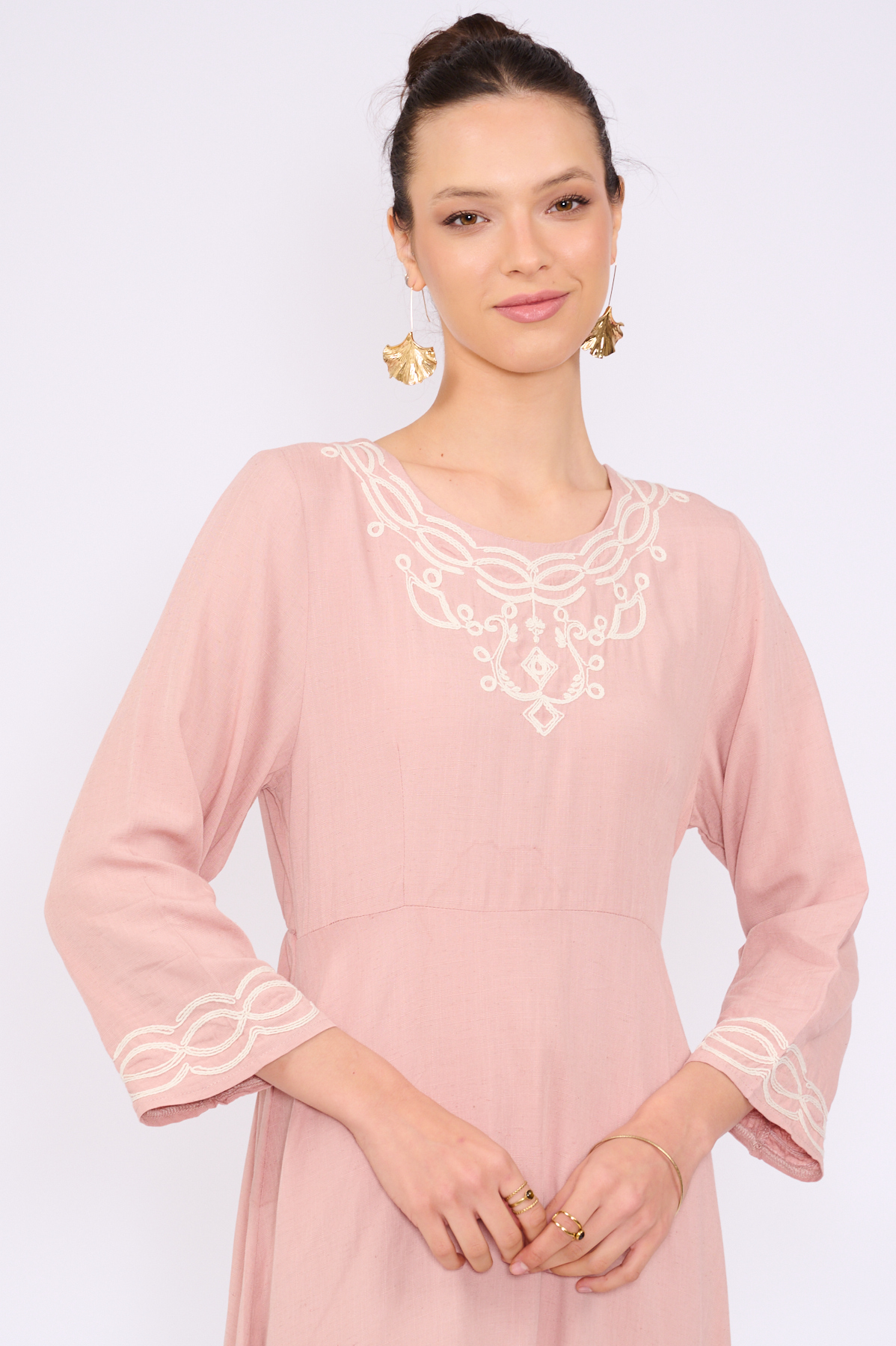 שמלה עשויה מבד טבעי בעל טקסטורה עדינה.