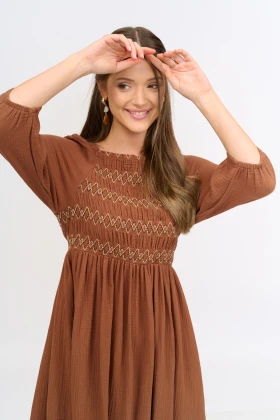 המחיר המקורי היה: ₪330.00.₪99.00המחיר הנוכחי הוא: ₪99.00.שמלת נדב - חום