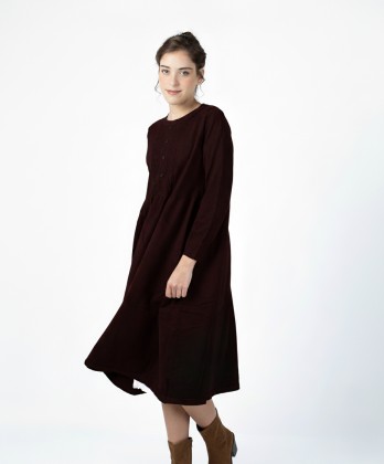 שמלת סריג נשית ומחמיאה בגזרה נינוחה עם חיתוך מתחת לחזה למראה אלגנטי ונוח.