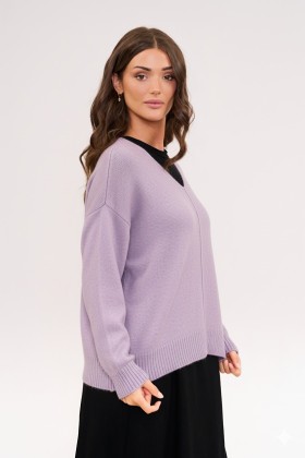 סריג רך ונעים בגזרה רחבה ומשוחררת, עם מפתח V מחמיא ותפר קדמי עדין שמוסיף עניין וסטייל.