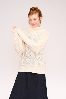 סריג גולף במרקם סריגה עשיר ורך, עם גזרה רחבה ונפילה טבעית שמחמיאה לכל מבנה גוף.
