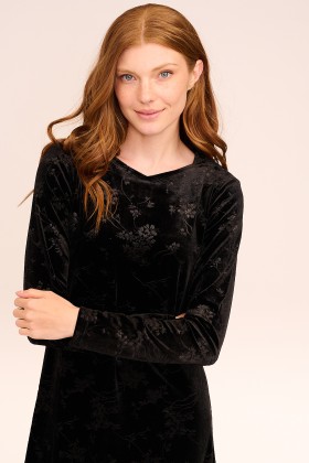 הדפס פרחים עדין בטקסטורת הקטיפה מוסיף טאץ’ יוקרתי, והגזרה הפשוטה והנשפכת מעניקה מראה מחמיא ונוח במיוחד.